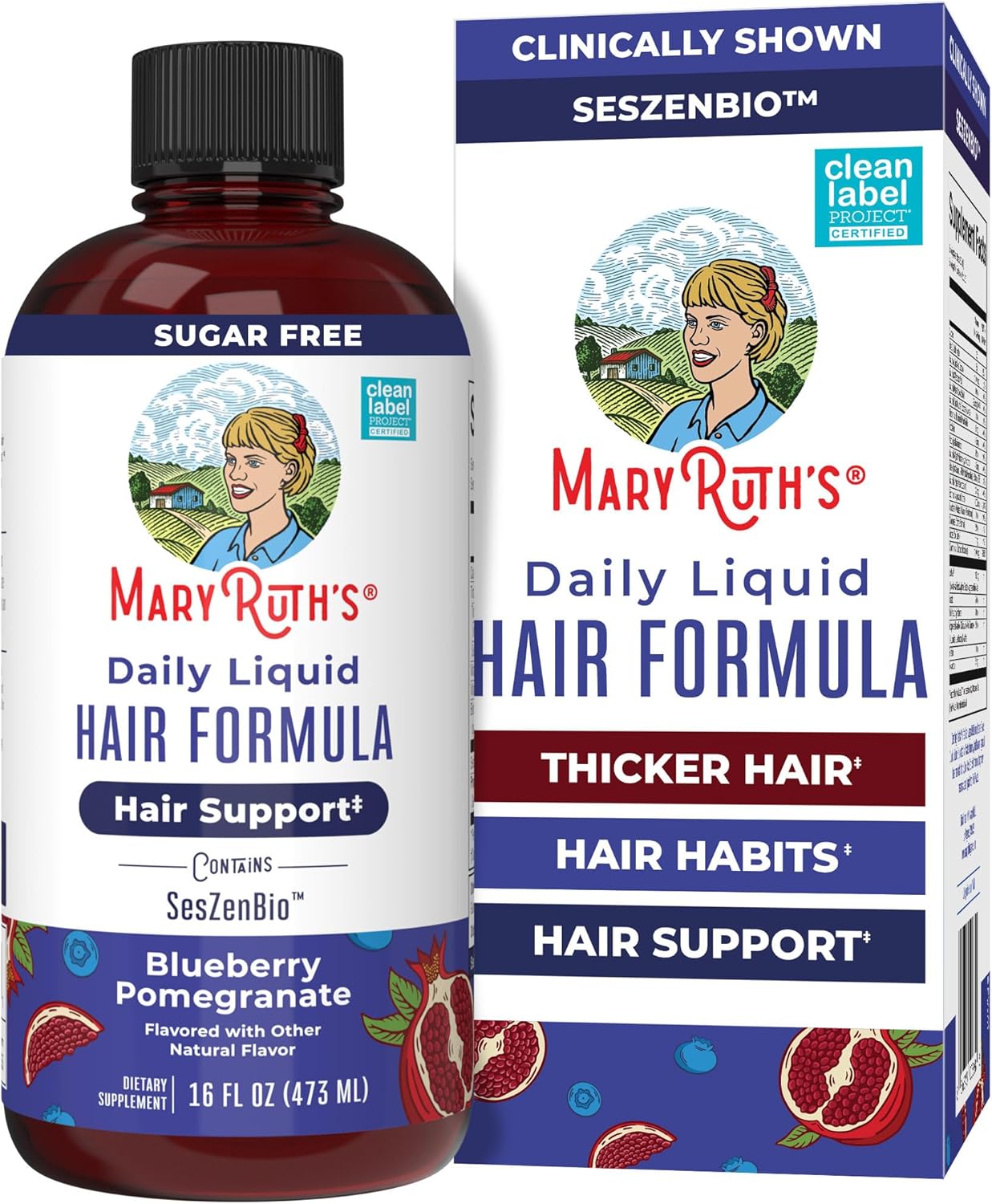 MARYRUTH’S Daily Liquid Hair Formula | With 500 mg SesZenBio™ + 2,500 mcg Biotin | Vitamin C | Thicker, Stronger Hair for Women | Hair, Skin, & Nail Health | Collagen Production