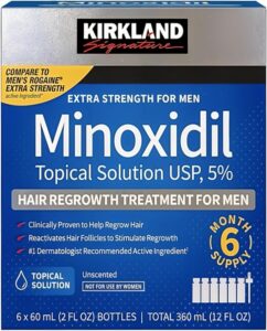 Kirkland Minoxidil 5% for Men, Topical Solution Extra Strength Hair Regrowth Treatment, 6 Months Supply, Total 12 Fl Oz, Dropper Applicator, Exclusive 2 MicroFiber Cleaning Cloths and Comb
