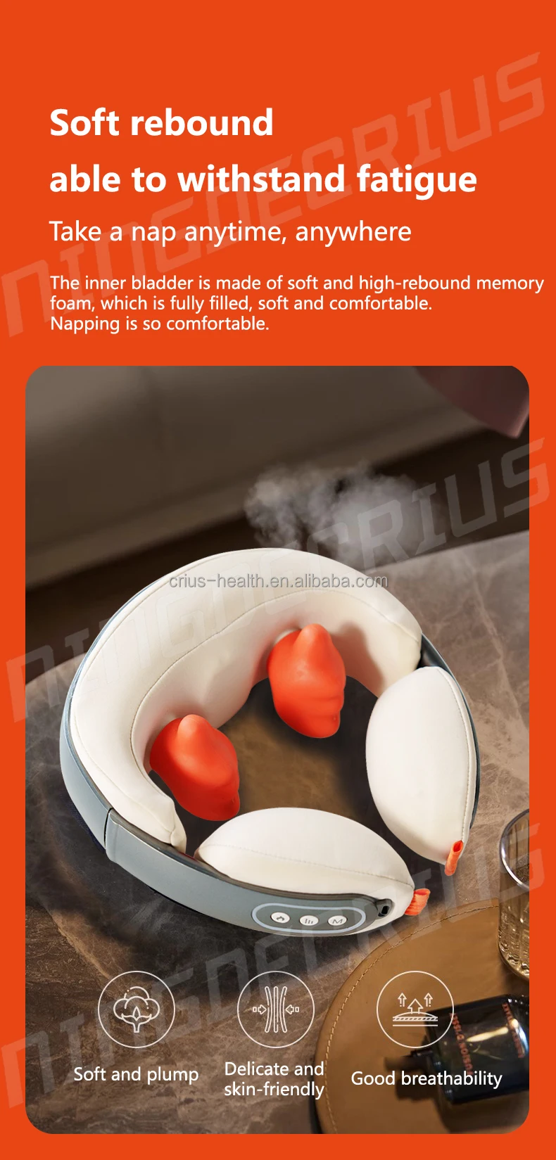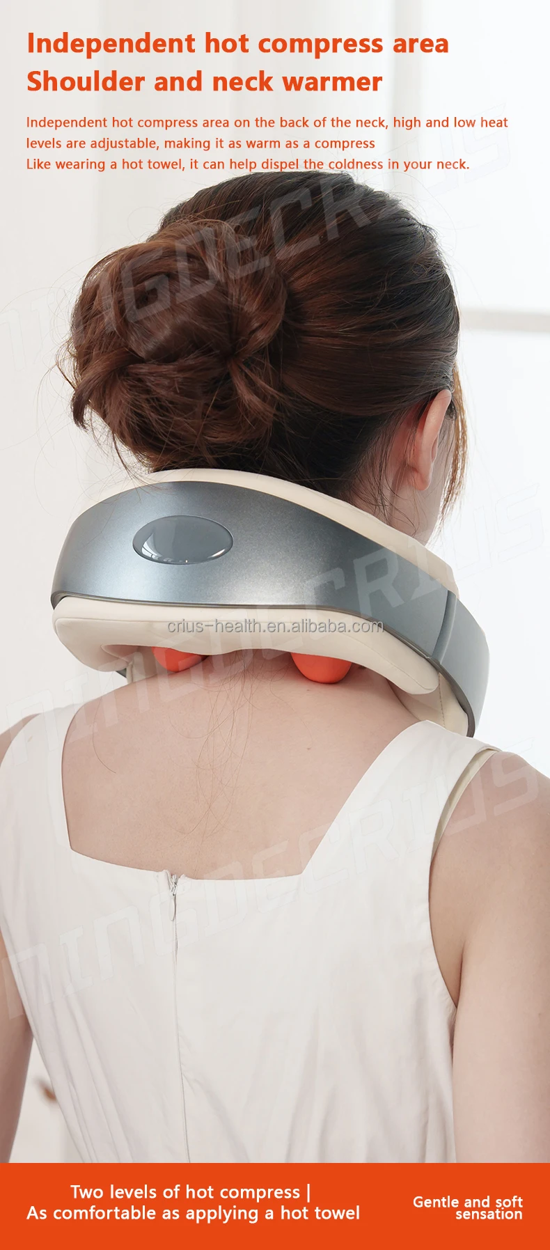 1.Bionic “Four Hands Grasping and RubbingSoft and warm new touch, 4 points of deep pressure relief 2.3D bionic “massage arm”The massage belt is soft and comfortable. 3.second generation massage arm structureA new experience of scratchingand rubbing massage 4.Simulated human handmassage headSoft as real fingertips 5.Three intelligent modesMassage as needed 6.Independent hot compress area on the back of the neck, high and low heatlevels are adjustable, making it as warm as a compressLike wearing a hot towel, it can help dispel the coldness in your neck.