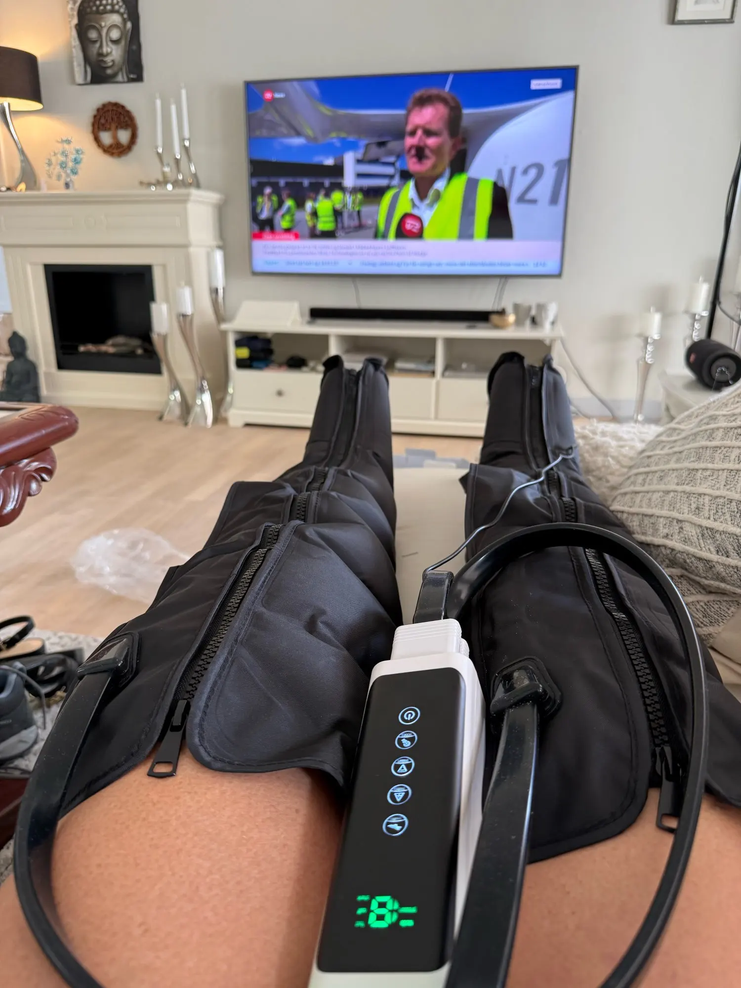 Totally surprised with the purchase. I had my doubts but it’s wonderful. Just like in a beauty center but on your sofa. Press hard and you can choose zone massage or whole leg massage and three intensity levels. I wish I had bought it a long time ago. Highly recommended if you suffer from swollen legs and fluid retention. Relieves the heaviness and makes your legs feel light. Very good quality.
