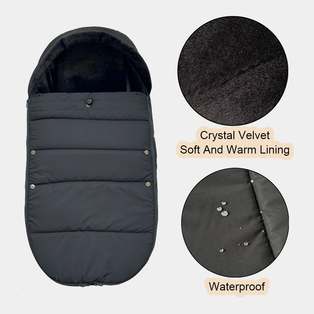 5. This footmuff is made of water-resistant materials, so that the footmuff will not get wet immediately when it rains or snows.