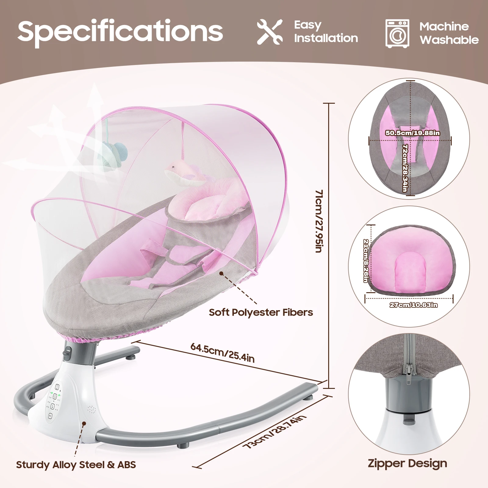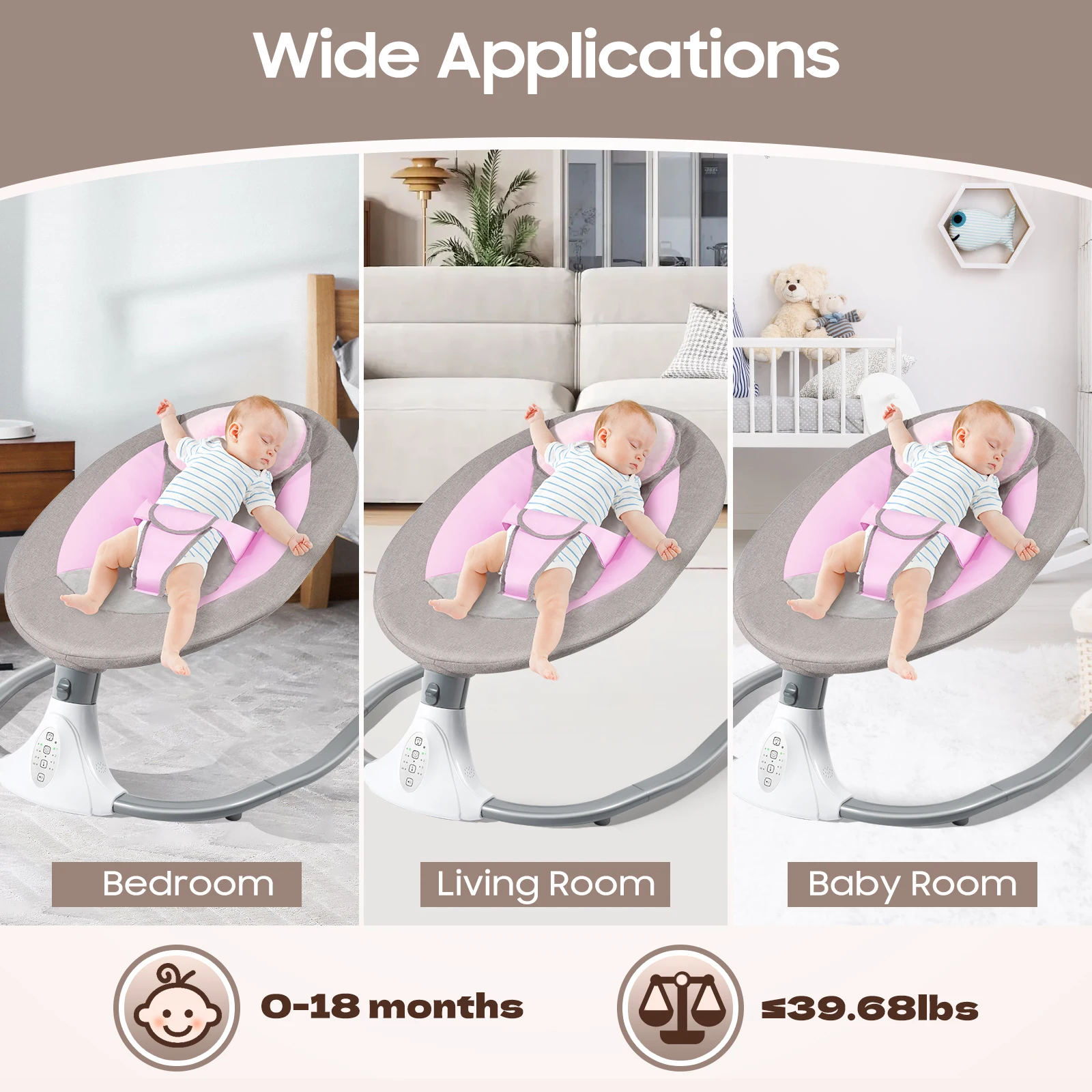 Baby Swings for Infants, Infant Swing with 4 Speeds, 12 Lullabies, Electric Swing for Baby, 3-Point Harness & Remote Control
