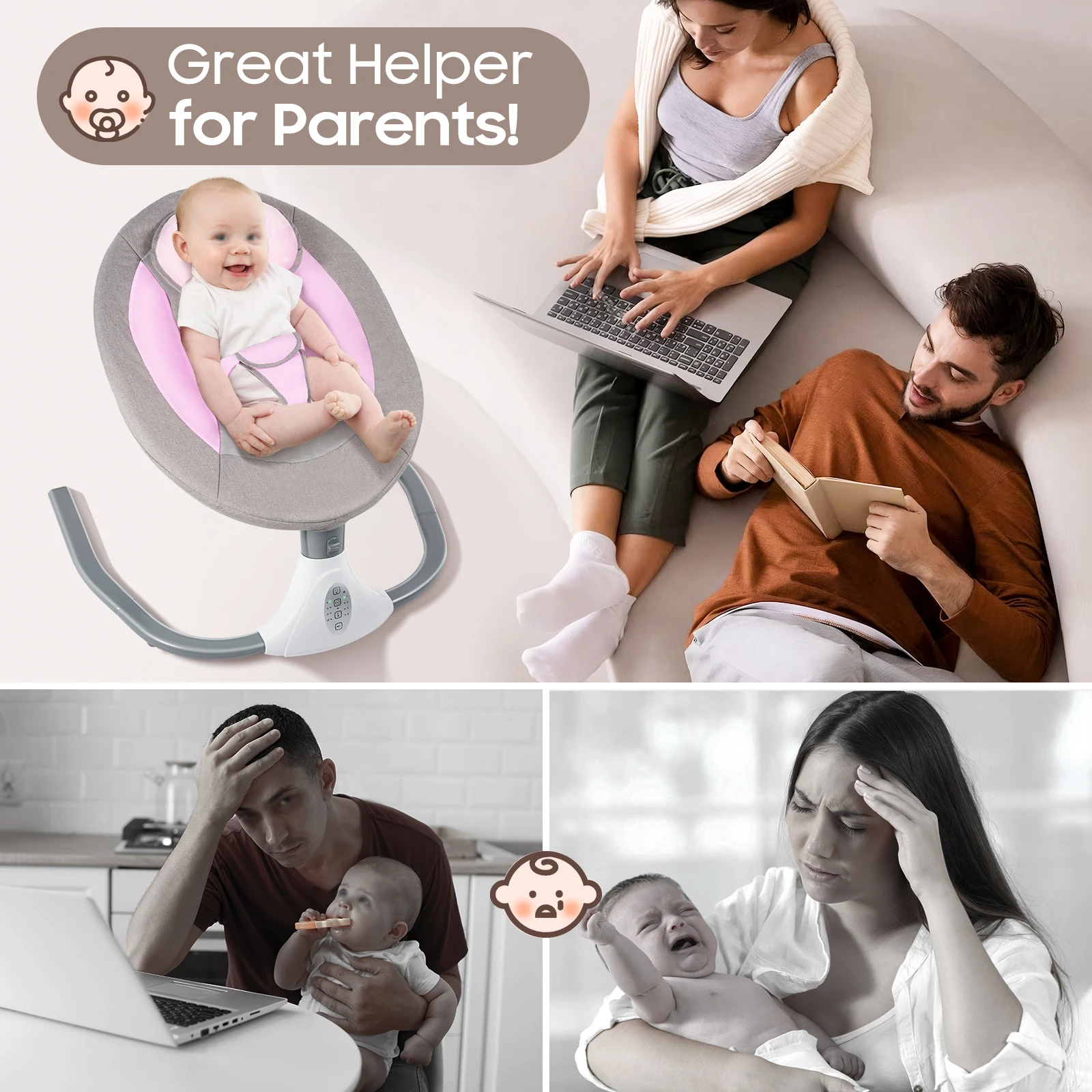 Great Helper for Mothers: This electric baby swing can quickly soothe the baby’s emotions through natural swing movements and gentle lullabies, allowing the baby to feel at ease like being embraced by their mother while freeing the mother’s hands.