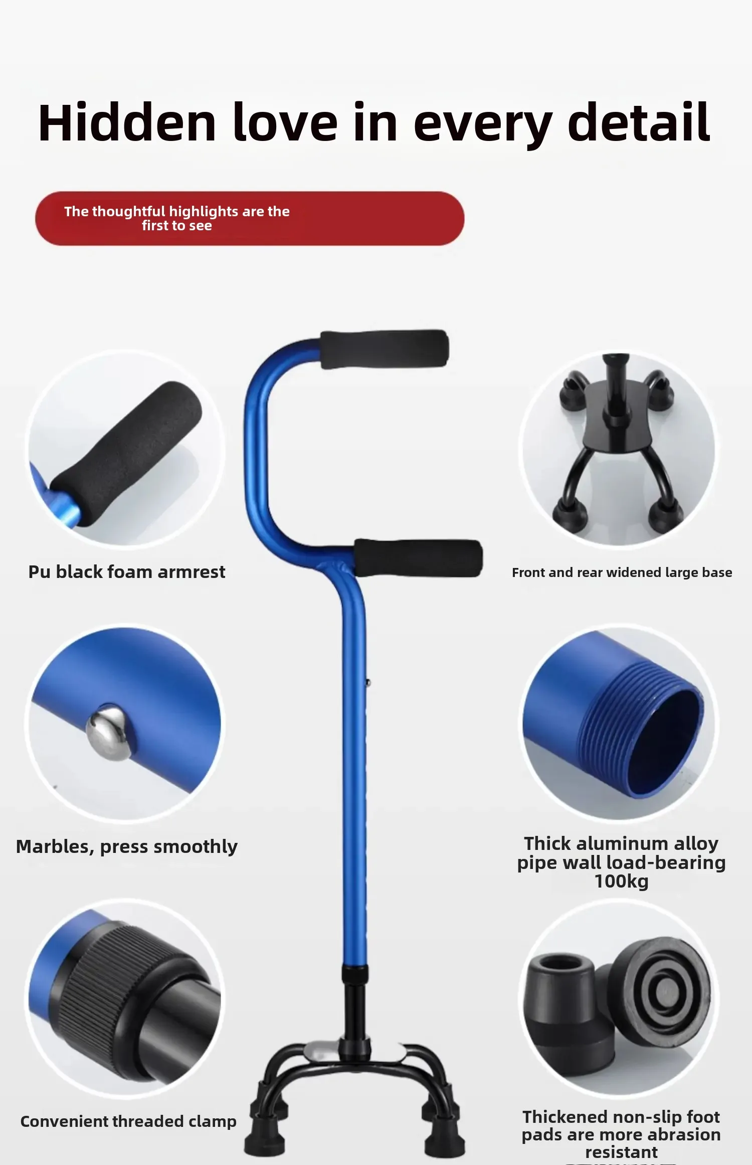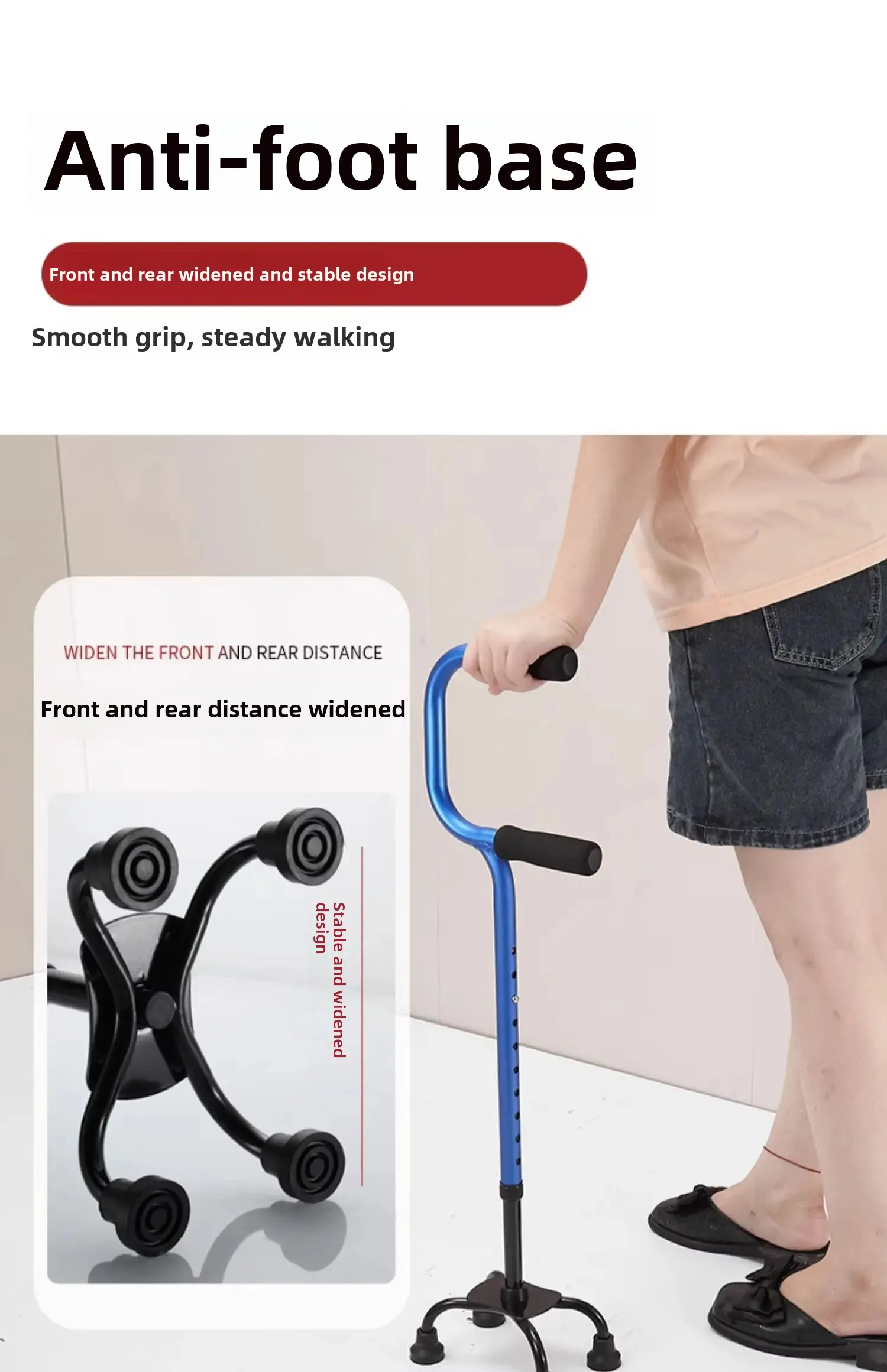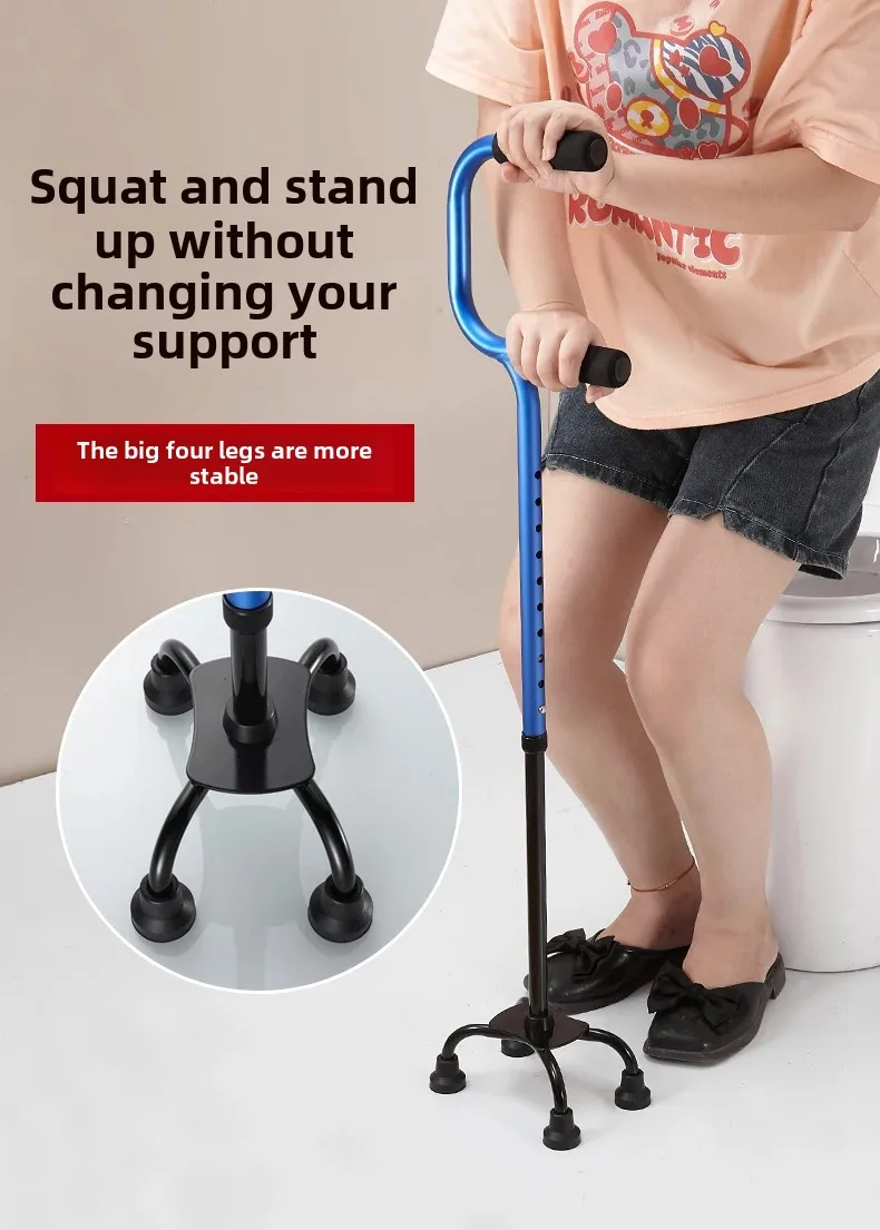 Double Curved Handrails Design Four-legged Crutches for Adults , Non-slip Four-corner Walking Stick,Get Up Walkers for Elderly