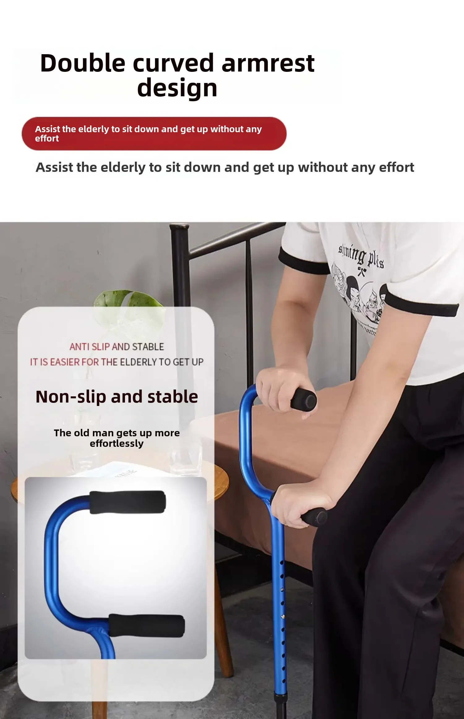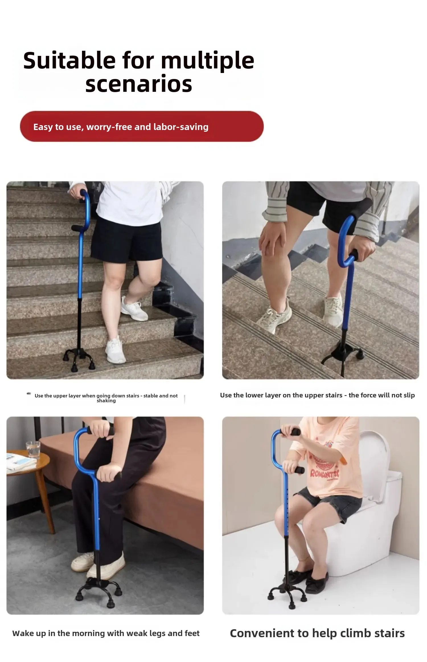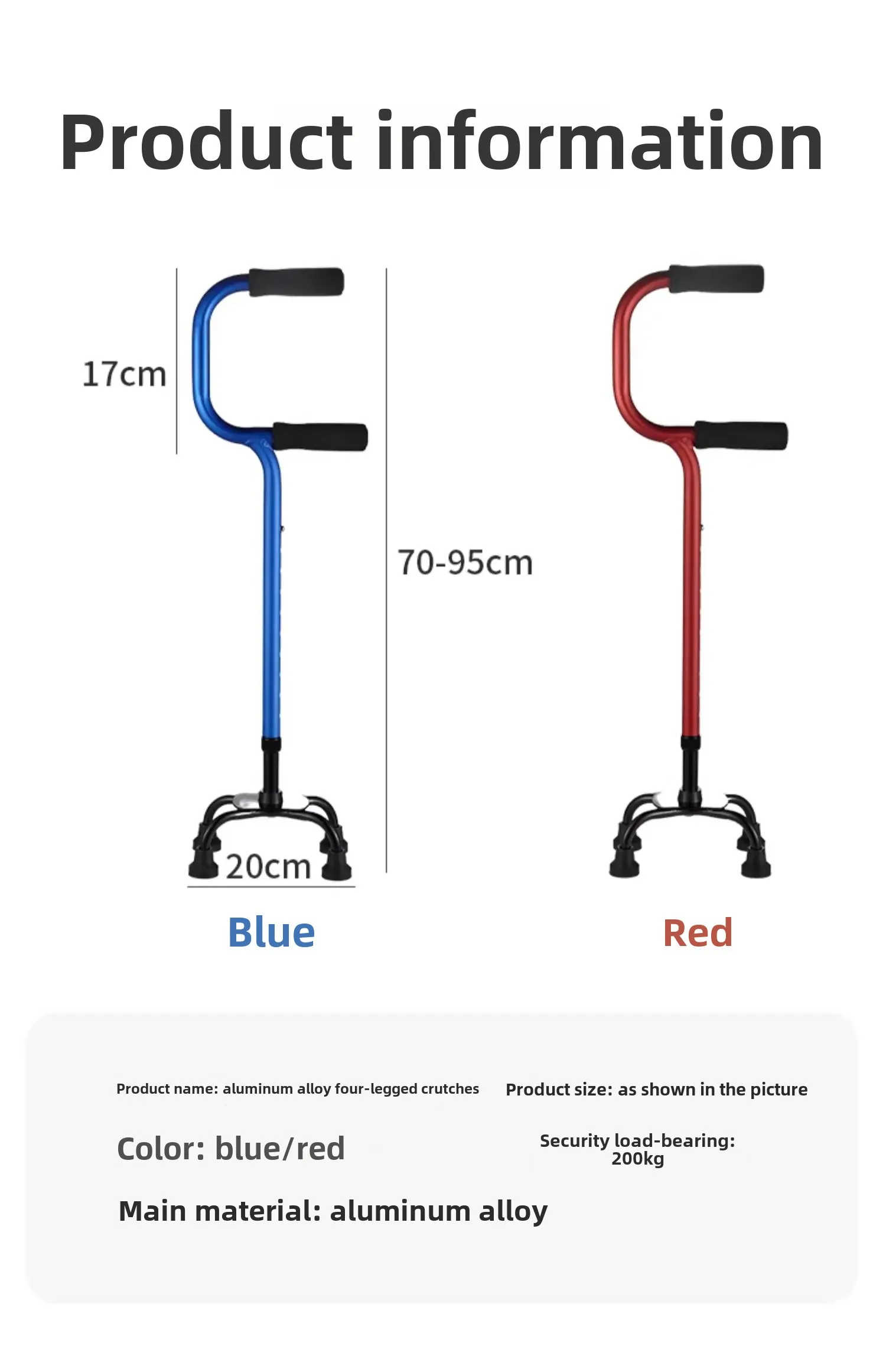 Double Curved Handrails Design Four-legged Crutches for Adults , Non-slip Four-corner Walking Stick,Get Up Walkers for Elderly