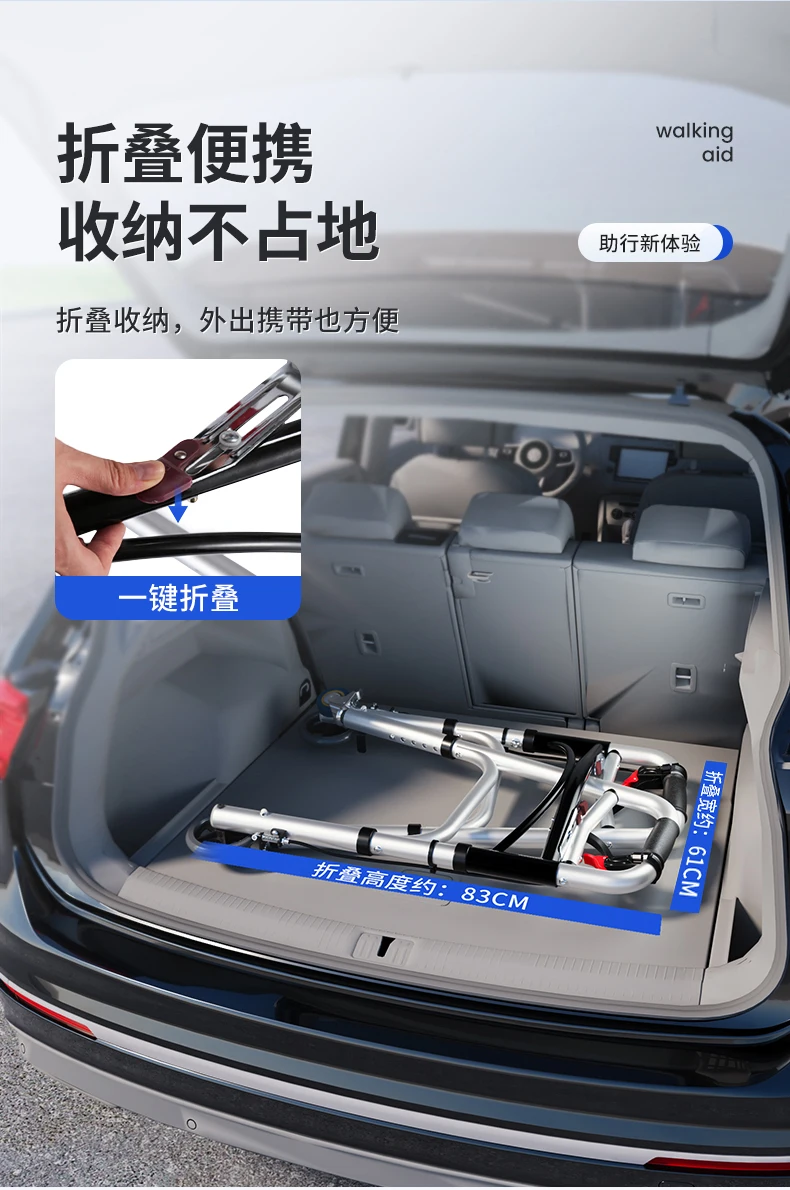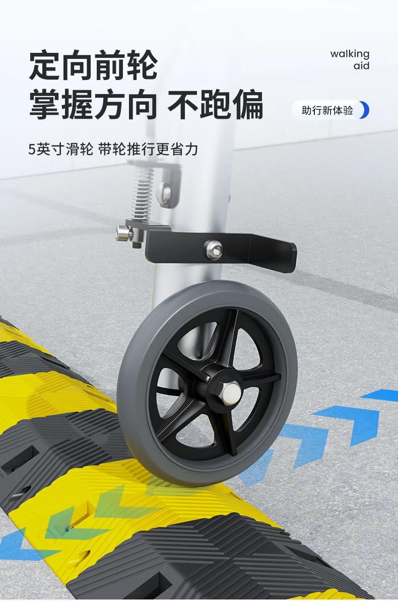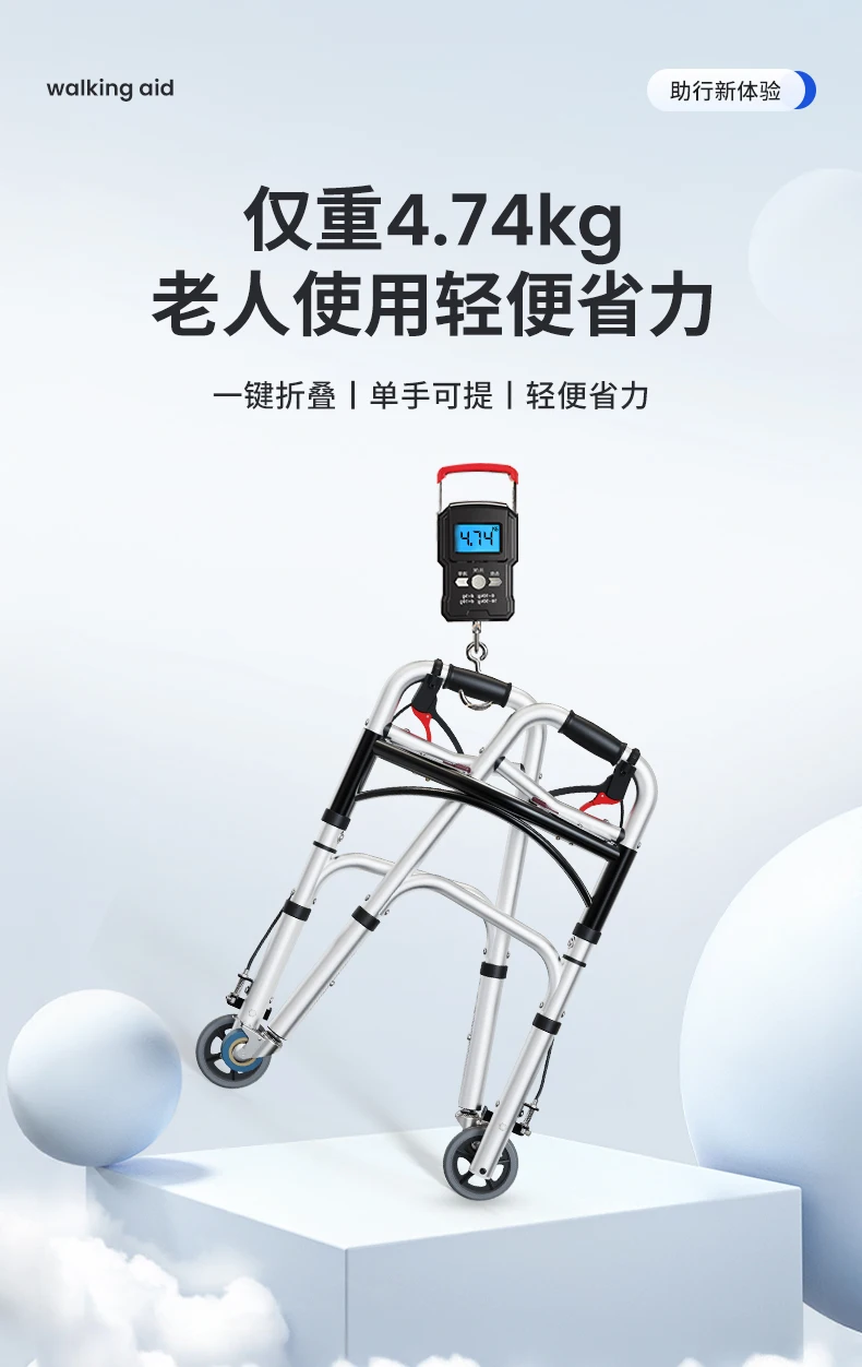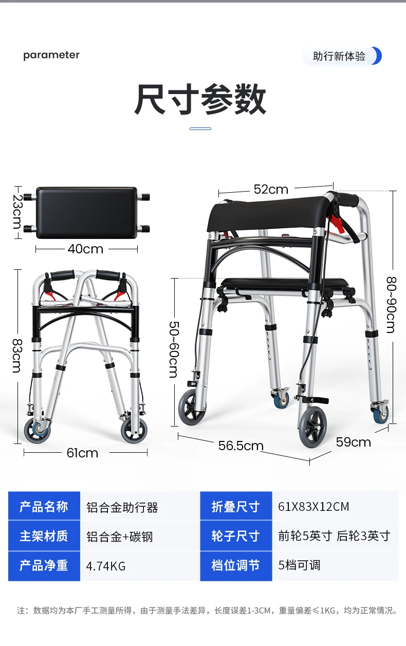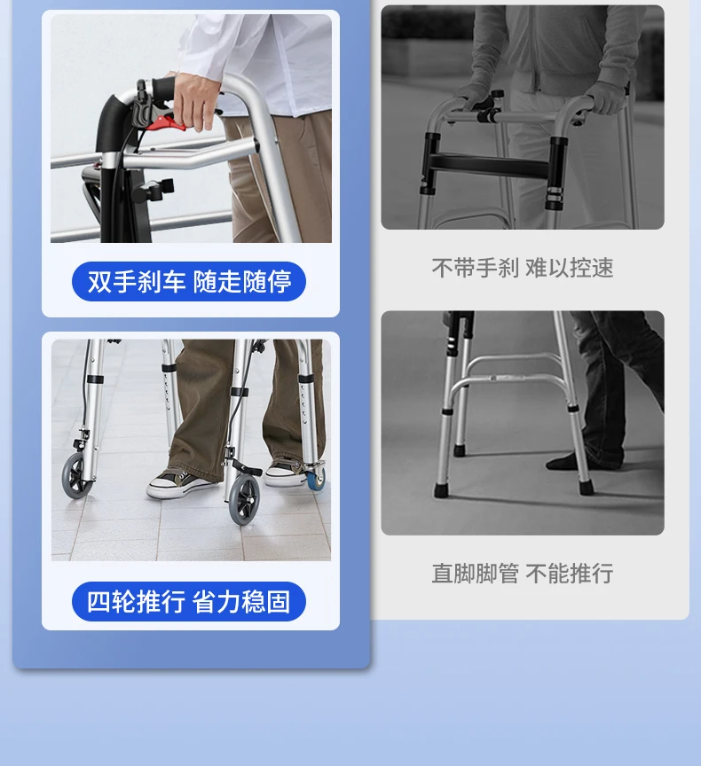 Elderly Rollator Walker with Seat Foldable Mobility Aid for Seniors Leather Backrest Four Wheels Easy to Push and Sit Stable