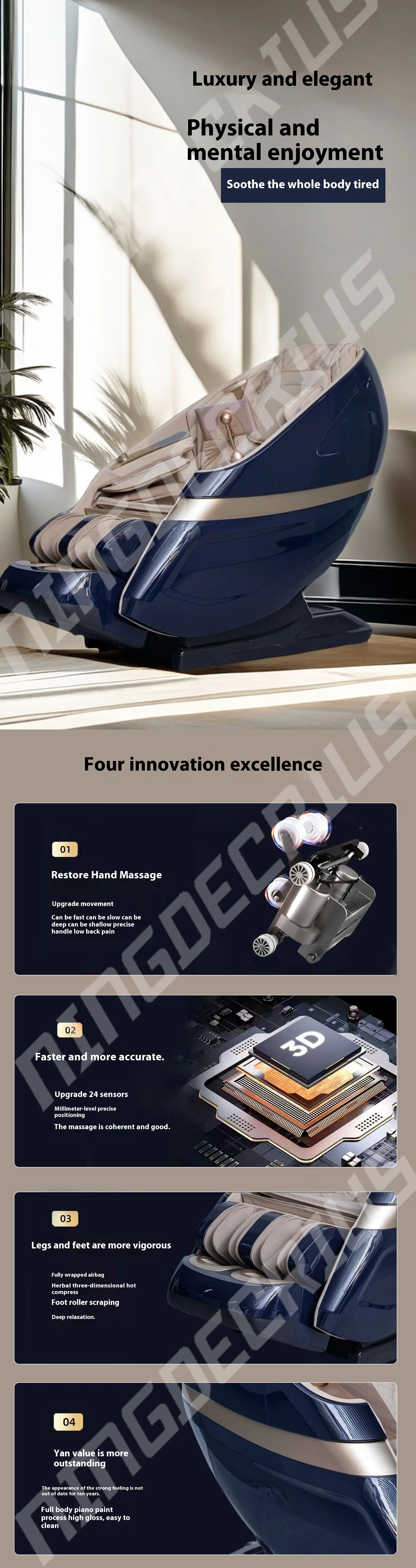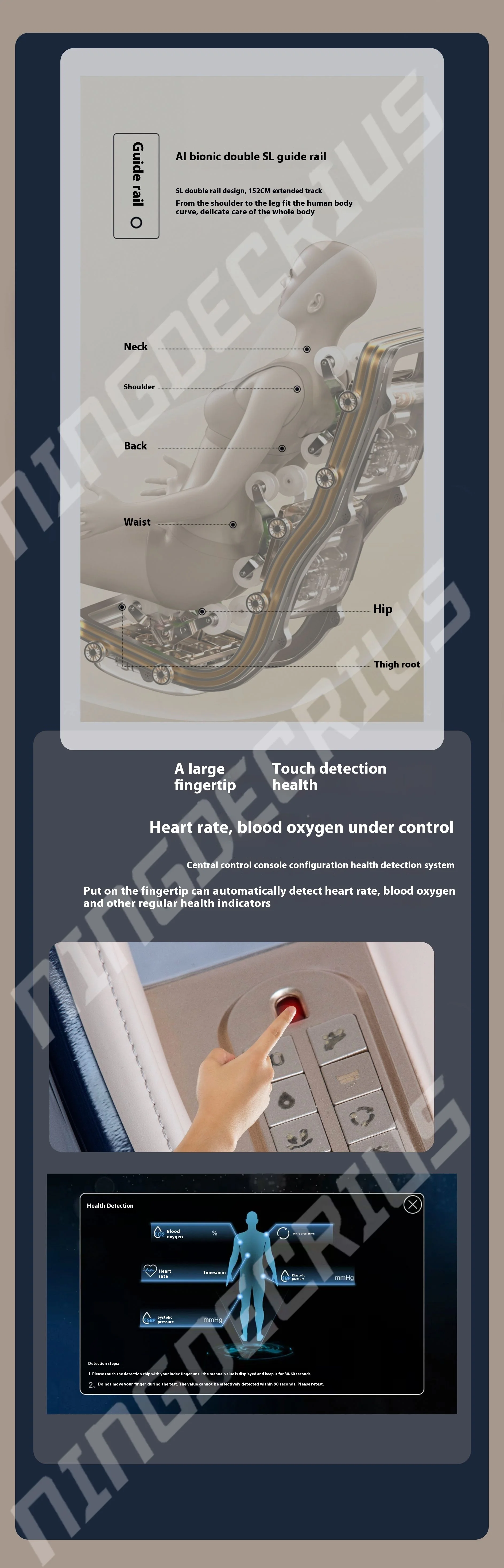 Function description: 1. Four innovation exce ence 2. Simulate the capsule’s zero-gravity elevation to lift the body into suspension 3. Heart rate, blood oxygen under control 4. Central control console configuration health detection system 5.Three quick operations.Parents can also get started guickly 6. 24 groups of upgrade procedures N massage techniques 7.Al Voice Control Butler
