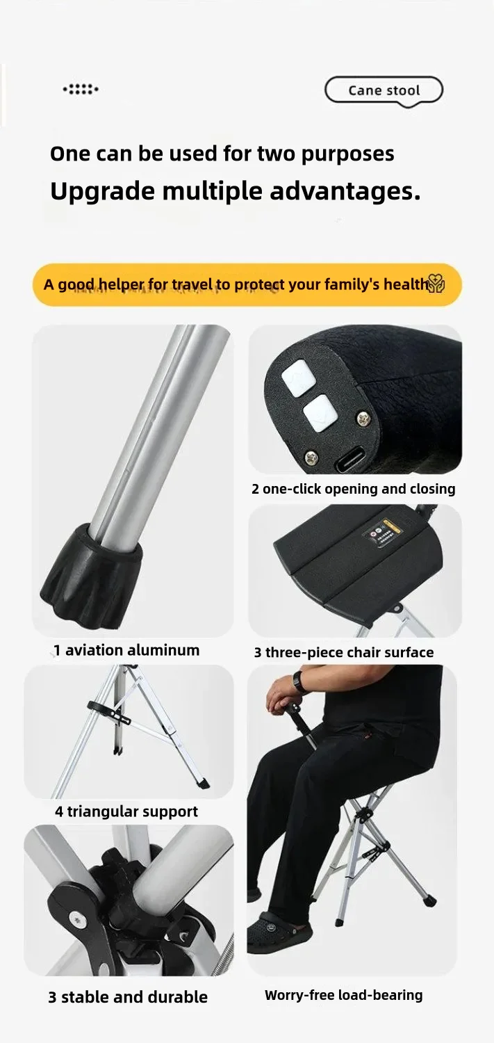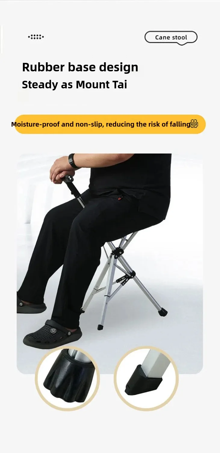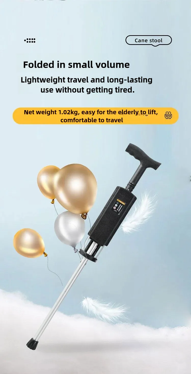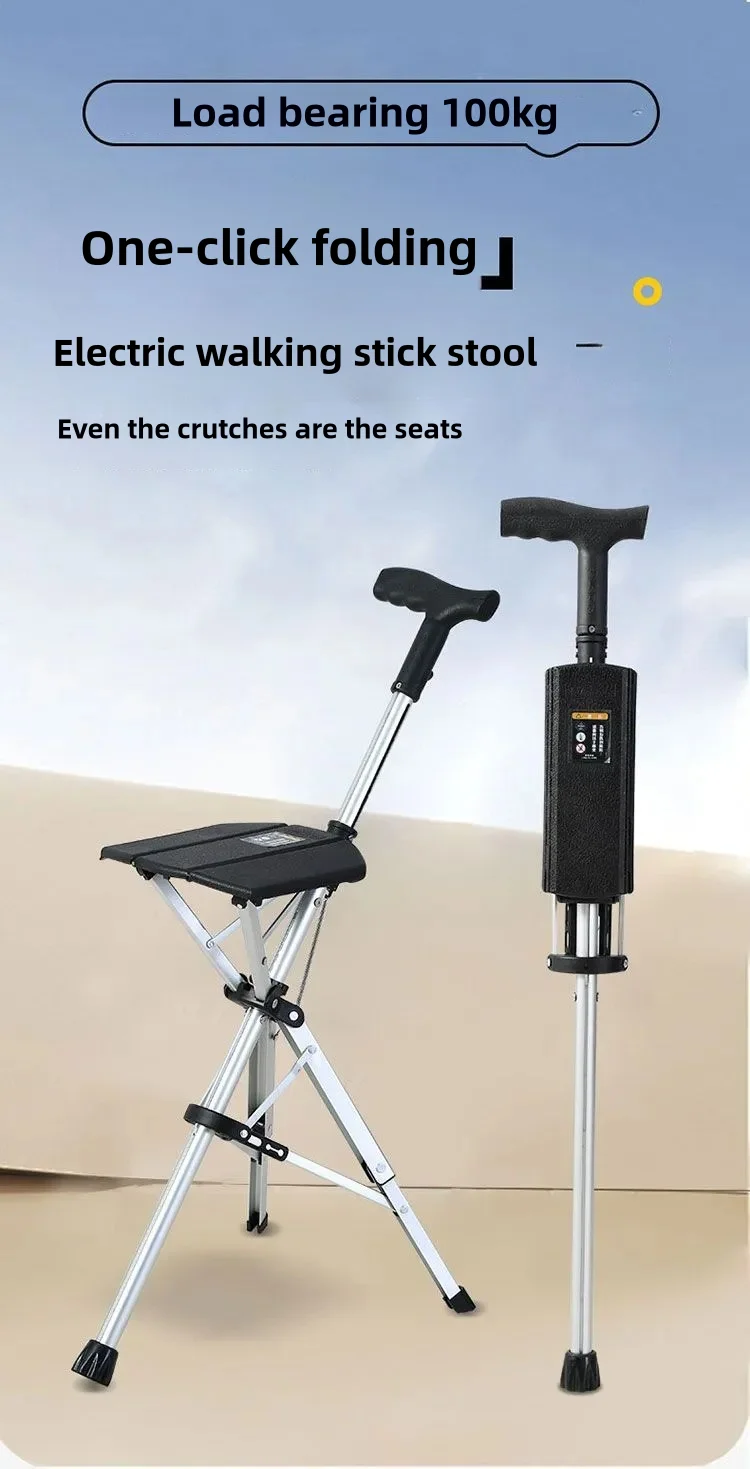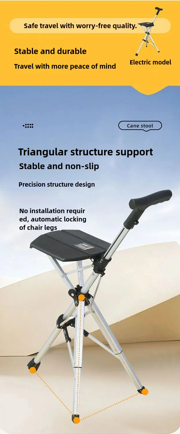 Portable Electric Tripod Cane with Chair Foldable Walking Aid for Elderly Mobility Support