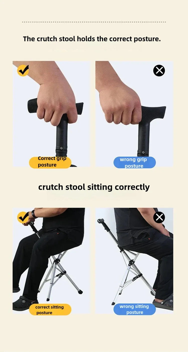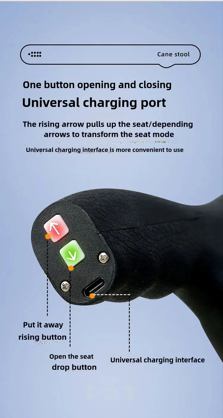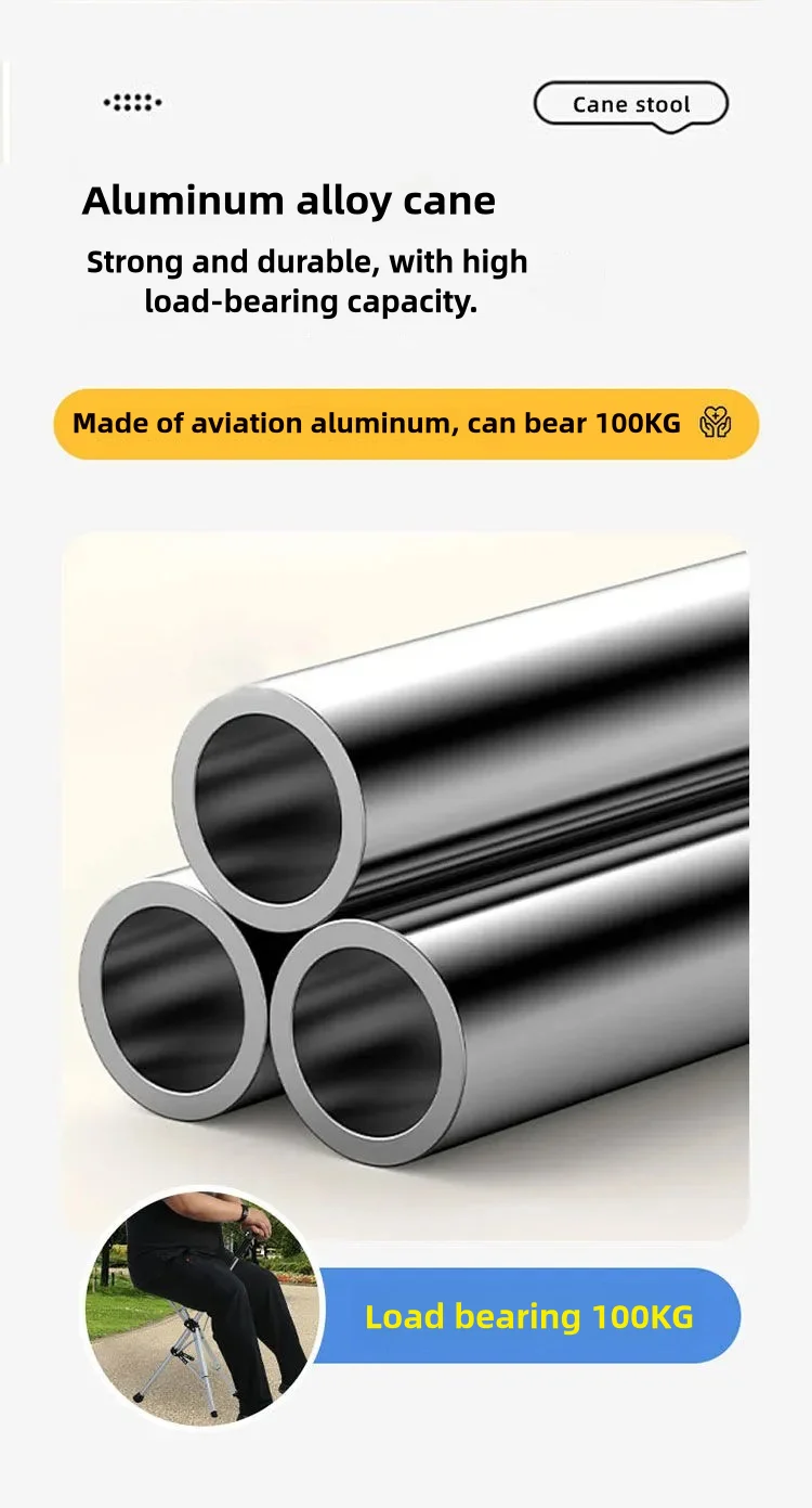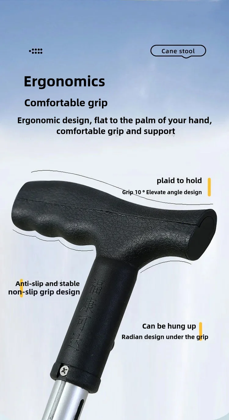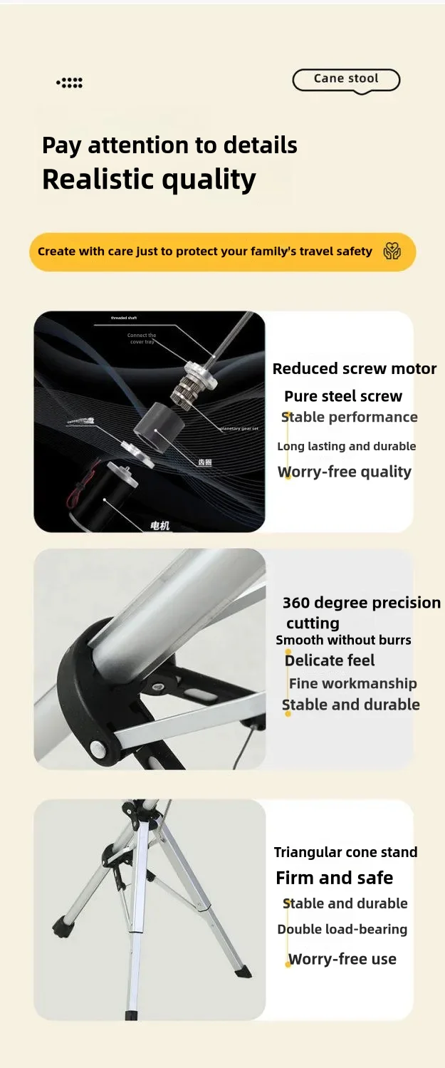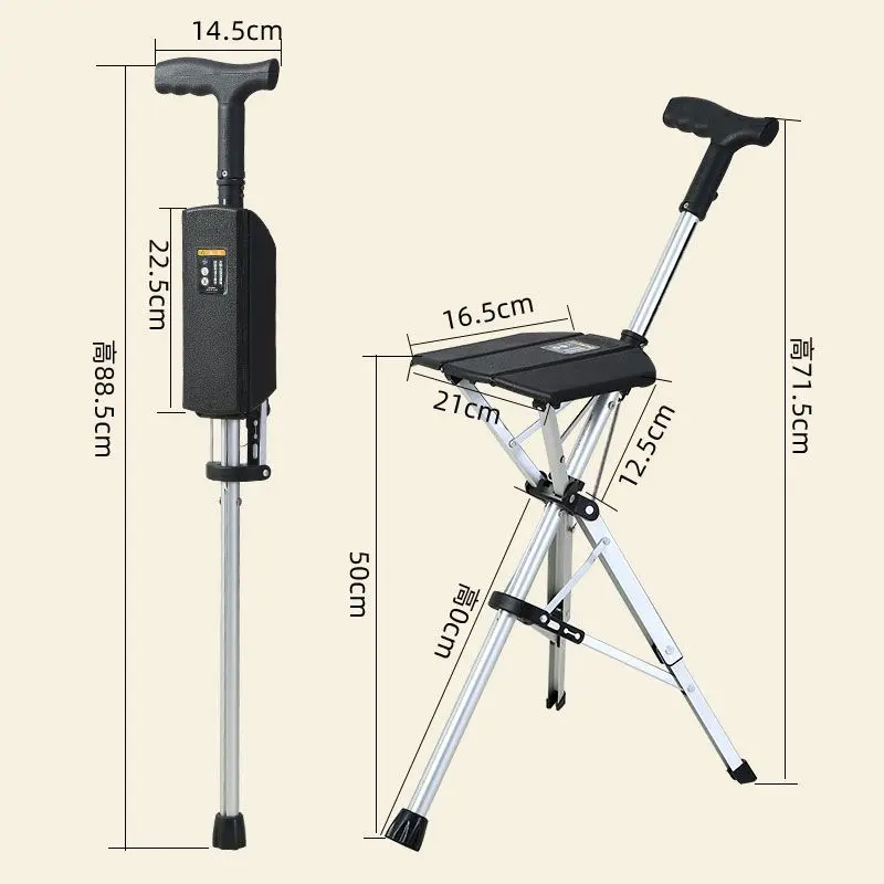 Portable Electric Tripod Cane with Chair Foldable Walking Aid for Elderly Mobility Support