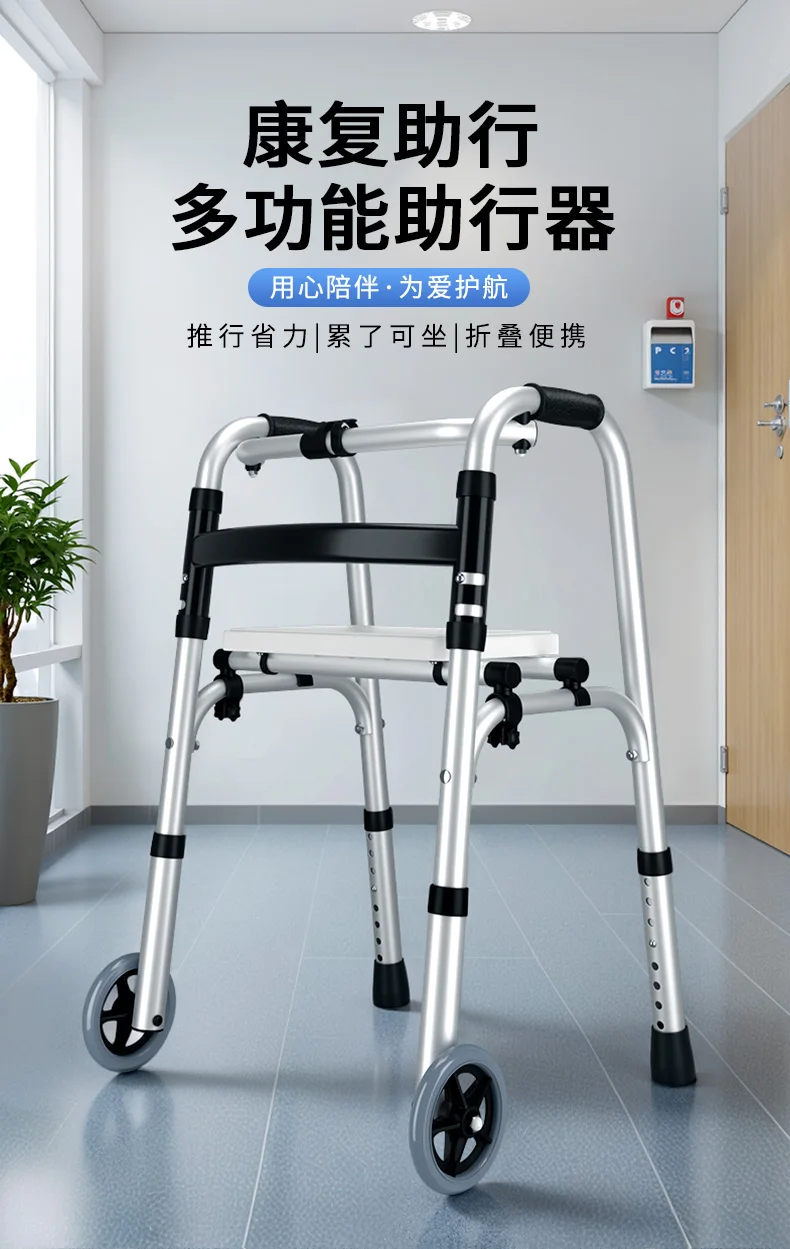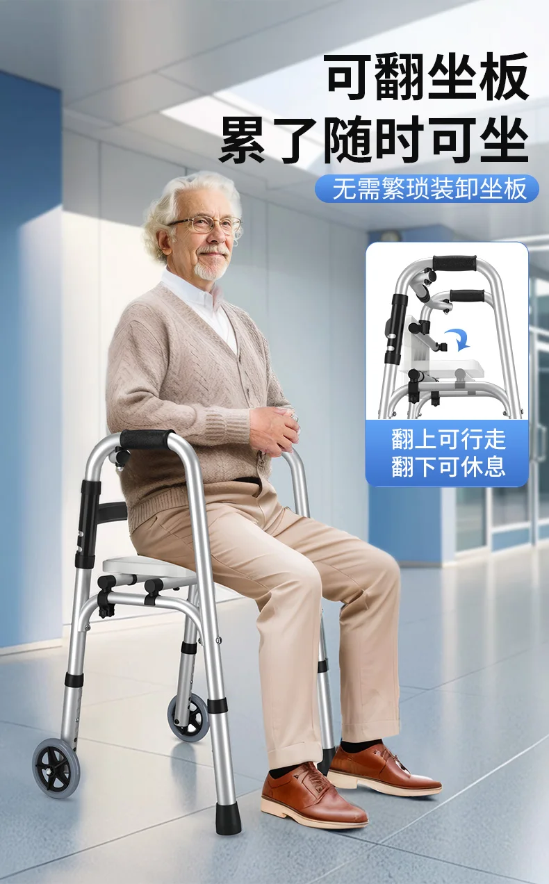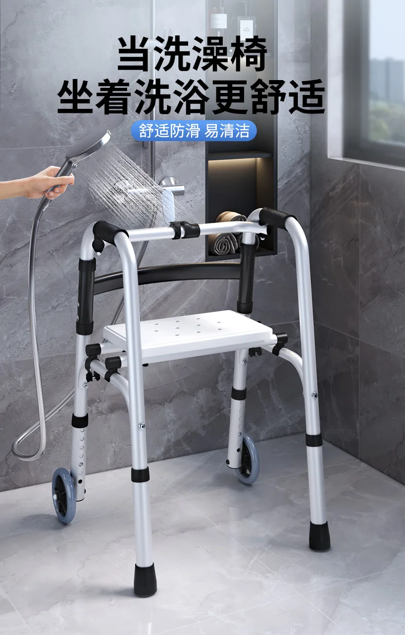 Walking Aids Walker with Seat for Seniors, Can Bath and Rehabilitation Rollator Walker, Four-legged Cane Hand-held Support Frame