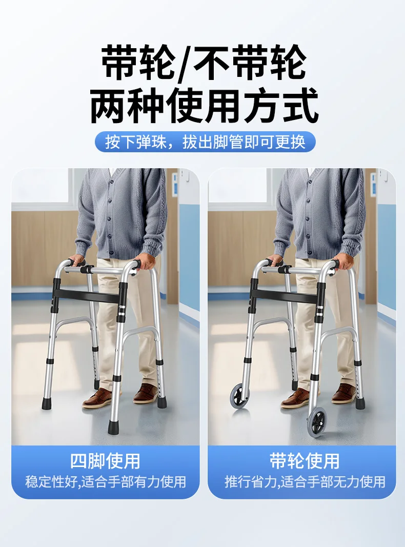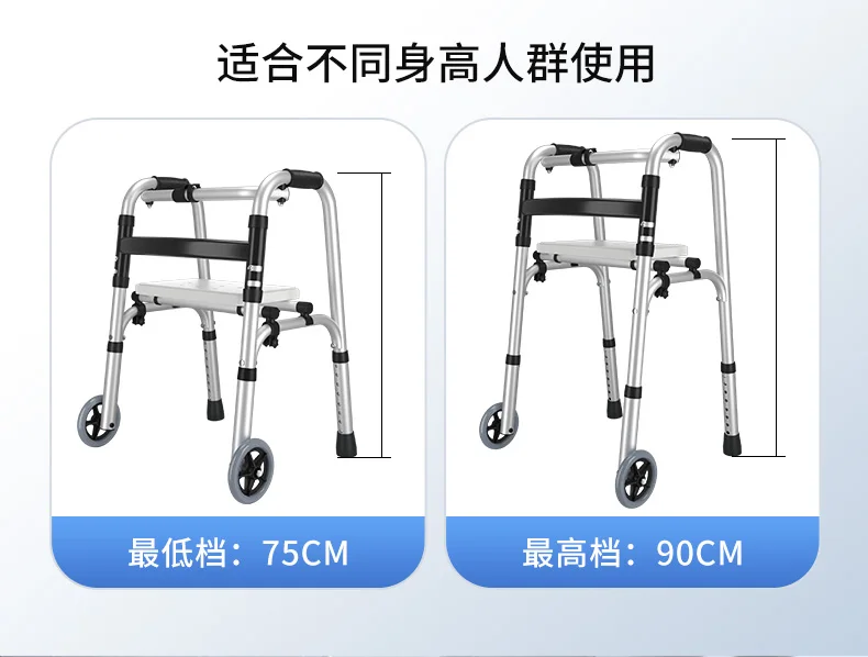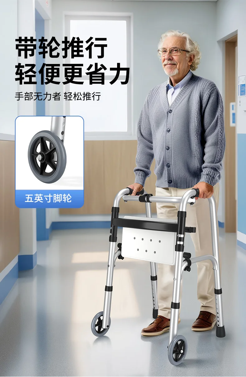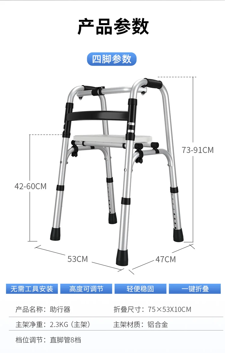Walking Aids Walker with Seat for Seniors, Can Bath and Rehabilitation Rollator Walker, Four-legged Cane Hand-held Support Frame